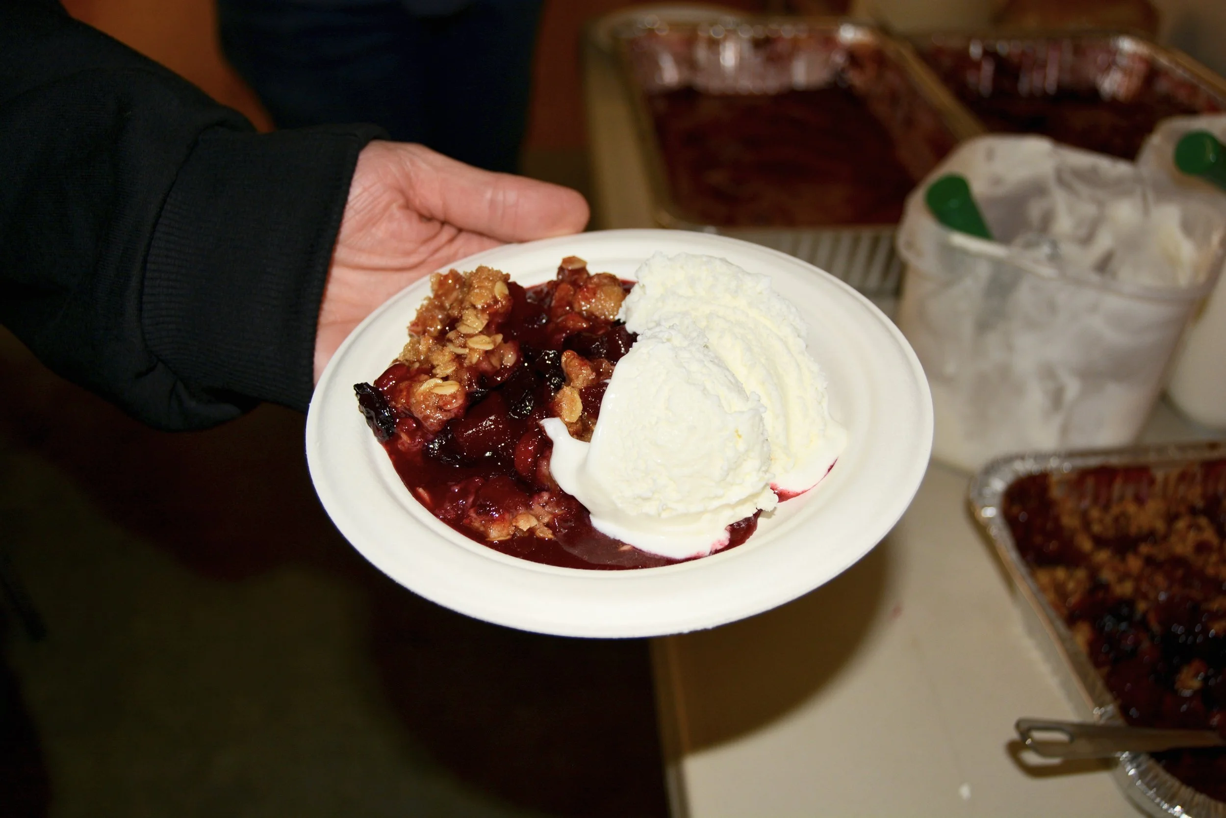 As everyone settled in, the aroma of hearty beef and vegetarian stews and fresh-baked bread filled the centre. Rustic Farm Girls cooked up a delicious meal, from mostly local ingredients! The beef was from RFG Farms, the vegetables from Olomero Farm, bread flour from Ramsum Farm, and the crisp was made with local haskap berries. Thanks to Rustic Farm Girls for the great meal!