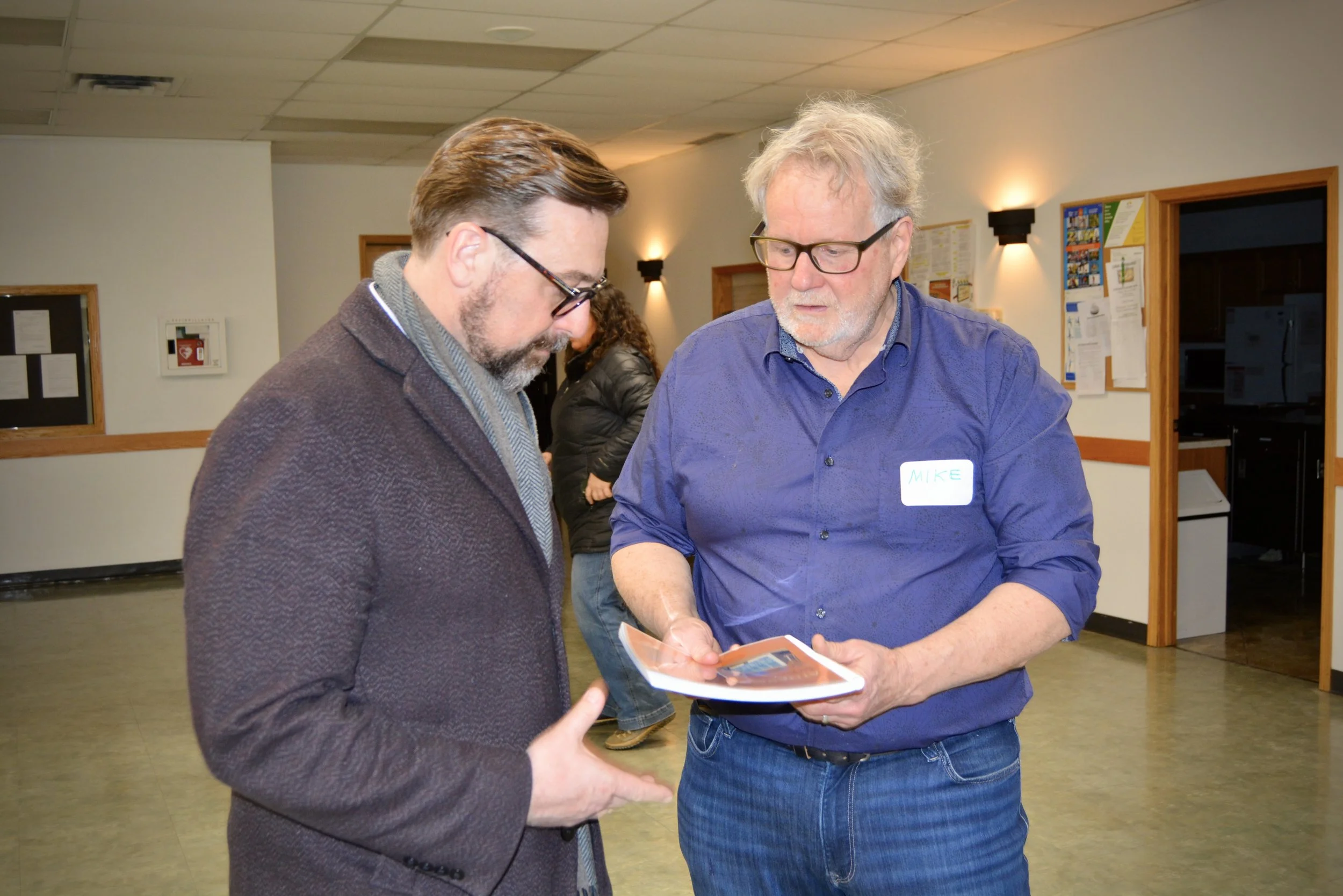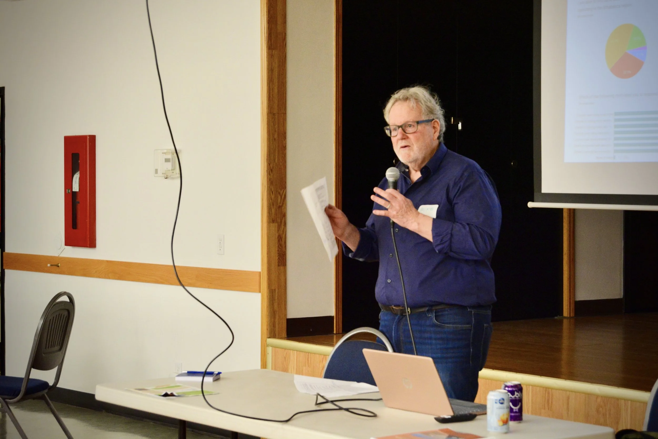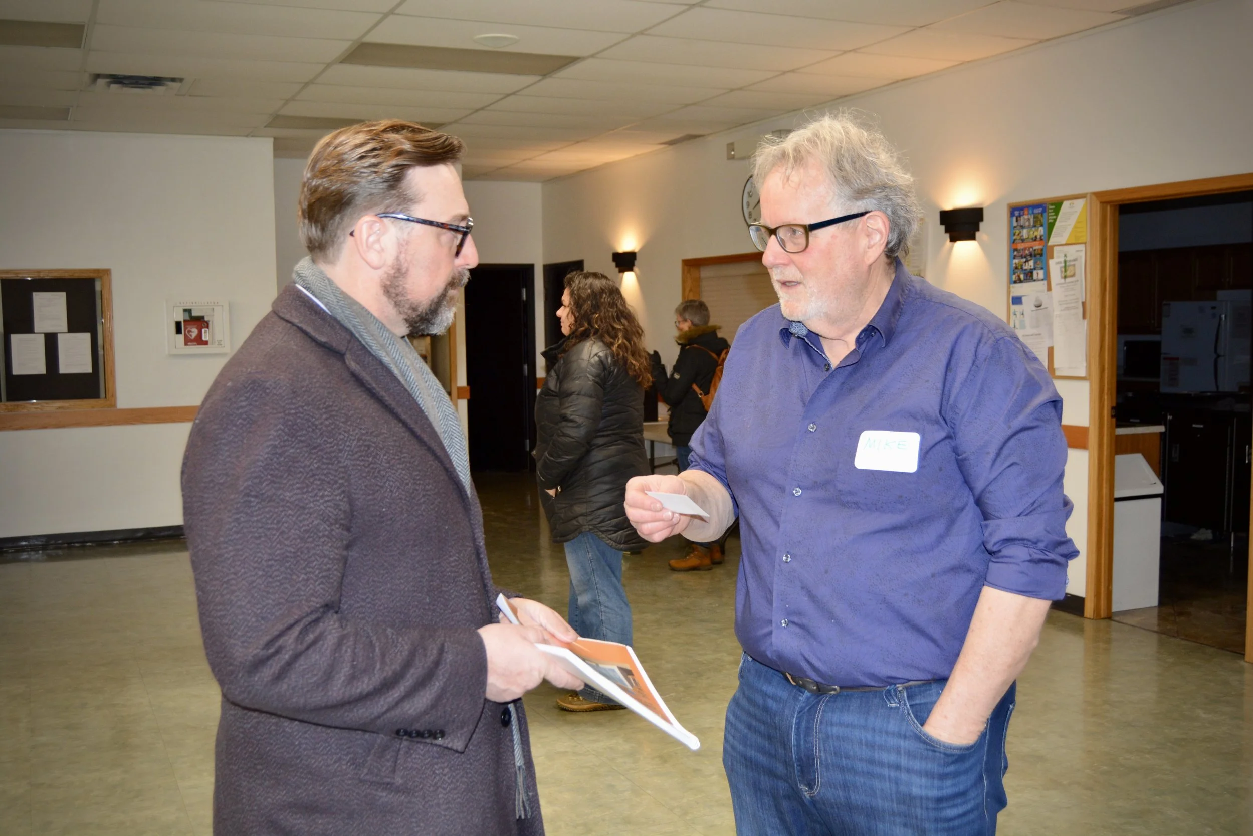 Mike and Cara thanked the crowd for coming and encouraged them to read the full report online. They explained the transition from the SCOP grant (Small Community Opportunity Program) work into the next phase of building the organization and doing the work to take the greenhouse project forward.
