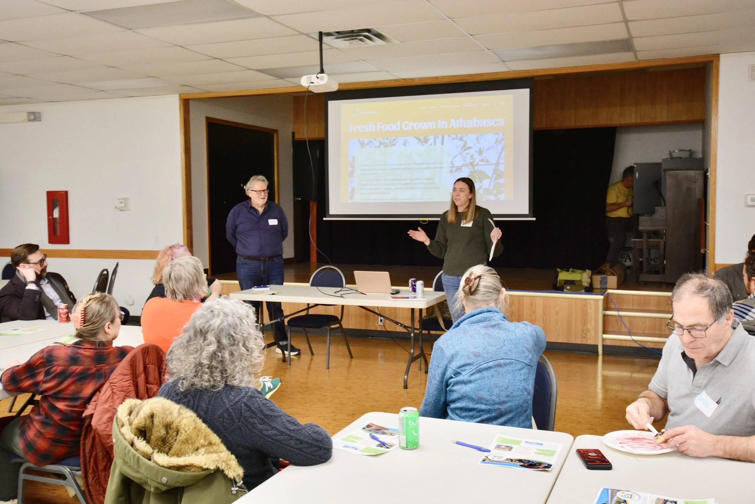 Almost one year after the first Athabasca Grown community engagement Connect for Food was held, over 70 excited Athabascans returned to the Athabasca Seniors Centre for the Feasibility Study Launch - Athabasca Grown: One Year and Beyond!